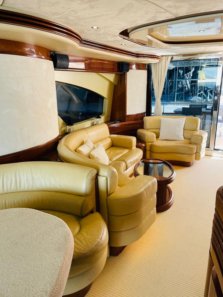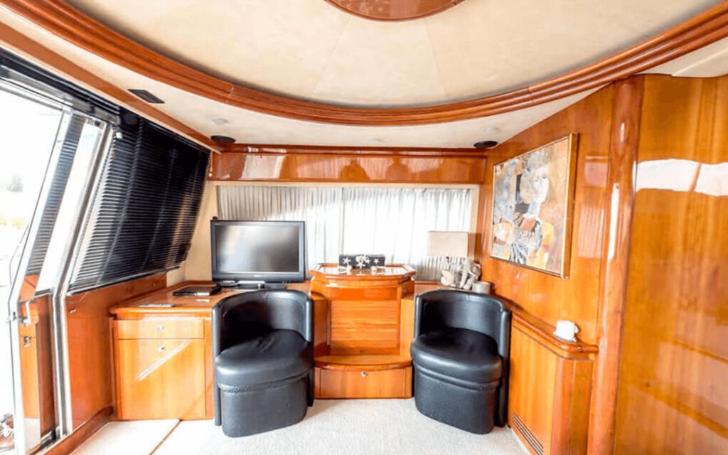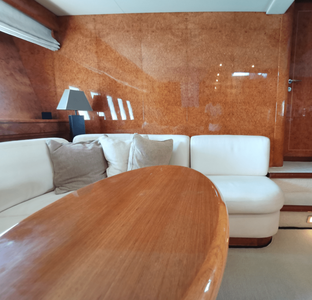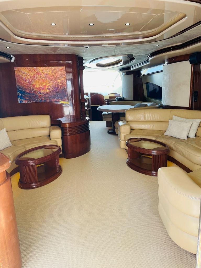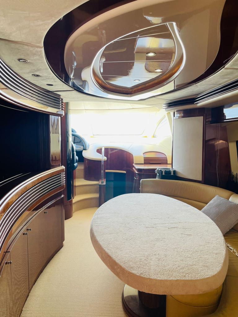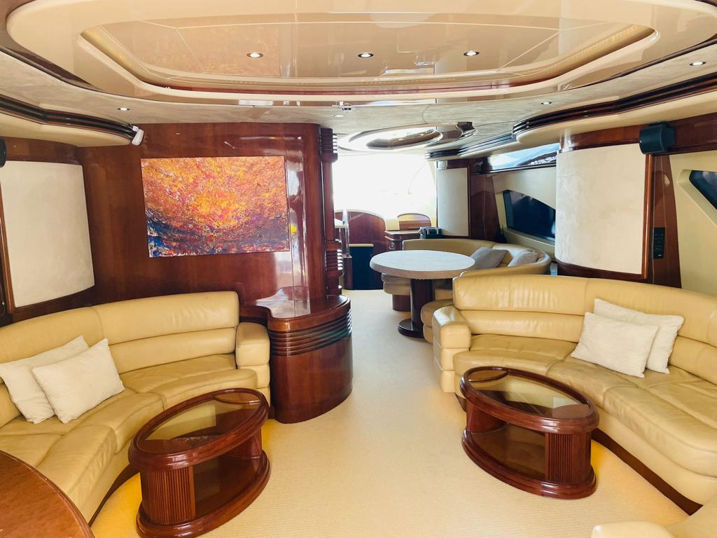 A classy model when introduced by Ferretti, the 53 features an open cabin design that makes this Yacht feel larger than 53 ft. She provides sleeping accommodation for PAX 6, a comfortable convertible dinette and mid cabin, a nicely fitted cockpit with a fore and aft facing rear cockpit seats, a wet bar, a transom gate leading to a large swimming platform along with a spacious fly bridge. Book the finest yachts in Mykonos.