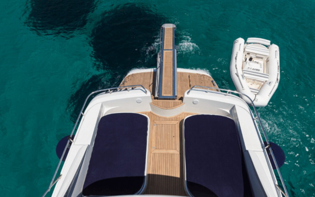 Riva is a truly legendary builder. From the all-mahogany sport-boats enjoyed by the likes of Brigitte Bardot in the 60s, to today’s state-of-the-art technological features found on boats such as the Rivale, anyone seen aboard a Riva boat is not just anyone. The Rivale has a truly admirable charter record. Her breathtaking lines, fast cruising speed, and comfortable common areas make her a must-have for a day out at sea. Two comfortable cabins will cozily sleep four people with their en-suite bathrooms, who can also enjoy fine dining on the outer deck’s gloss varnished teak table. Just crack the Champagnes open and indulge to the grandiose style of the legendary Italian “lady”.