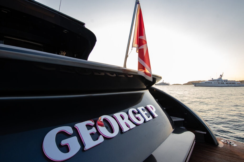 GEORGE P a AB Yachts 92, one of the best yachts Mykonos, a luxurious motor yacht, perfect for unforgettable yachting holidays, cruising the Greek Islands. She can accommodate 6 guests in 3 luxurious cabins. Each cabin boasts a simplistic modern decor. The yacht offers top interior design, speed (1825 HP) and luxury. Below decks, GEORGE P motor yacht has a neutral casual atmosphere. The salon is an open plan with the formal dining on the port side and a sofa to starboard. Honey toned wood floors, cream panels and head lining, crisp white soft furnishings and ample natural light from elongated side windows create a spacious open feel. A lower deck leads to the galley and country style table. Motor yacht GEORGE P offers generous exterior living. The aft deck boasts an alfresco dining option, fabulous sunpad and massive swim platform. Wrap around decks lead to the foredeck and a further large sunpad.