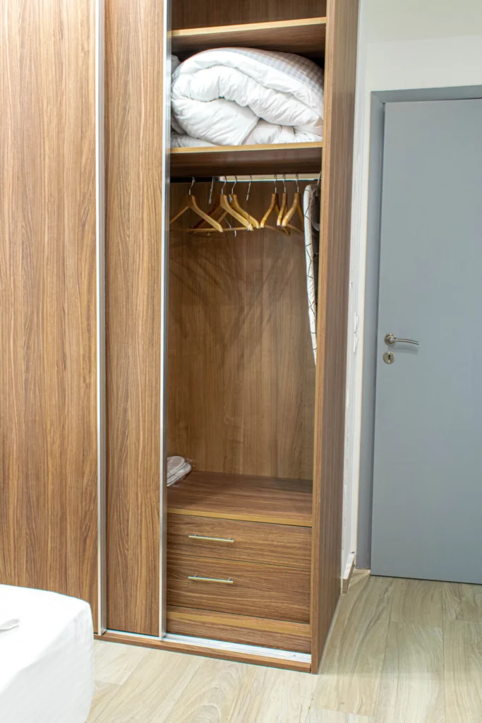 Fira Athens Suite is designed to offer a sanctuary of relaxation in the city’s heart. The suite boasts spacious interiors, modern furnishings, and a calming aesthetic inspired by Greece’s rich heritage. With features like a plush king-size bed, a fully equipped kitchen, and a sleek bathroom, Fira ensures a stay filled with comfort and convenience. For added indulgence, enjoy the private balcony offering stunning views of the vibrant cityscape.