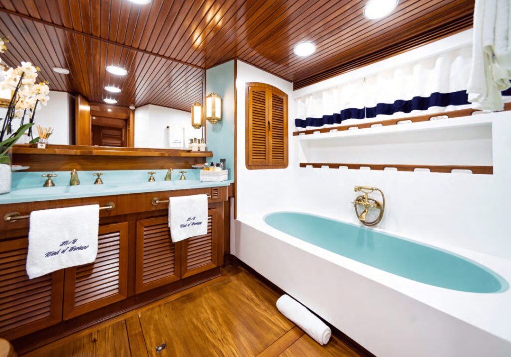 - MASTER Full Beam Midship Master Stateroom on lower deck with double berth, wardrobe and private