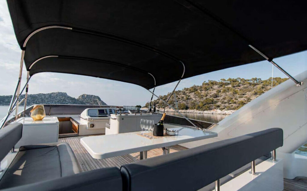 Designed for cruising enjoyment where you may have a crew member or two and an intimate gathering of friends or family, this majestic 72 mega Mykonos yacht is built with originality, prestige, comfort and sophistication in mind. A sleek design with a hard top that slides open in both the saloon and the cockpit creating one large indoor/outdoor saloon, the largest in its category. Choose one of our most luxurious mega yachts in Mykonos!