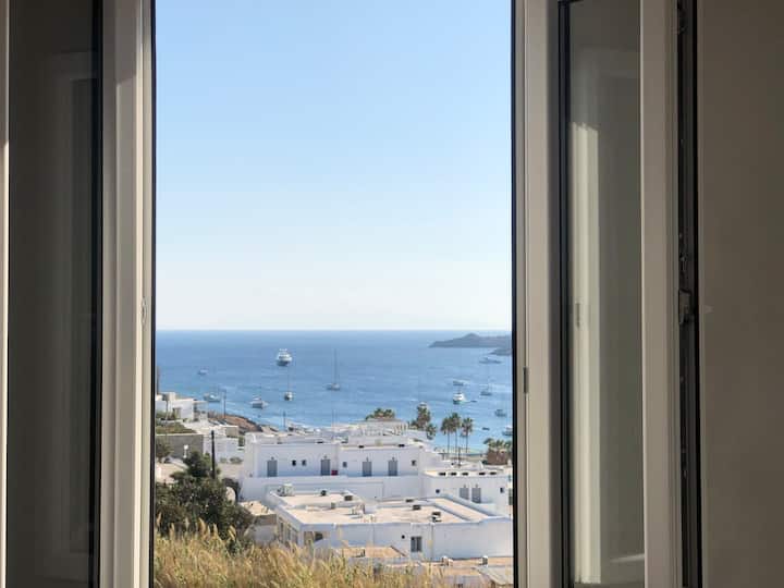 This seaview villa is located in Ornos beach, Mykonos island.