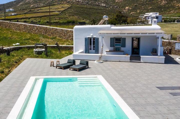 The villa is suitable for ten guests, with a beautiful private pool – swimming pool in Ano Mera in Mykonos, in the north part of the island, sitting on the outdoor… guests have the chance to enjoy the romantic and colorful sunsets of the Aegean sea.