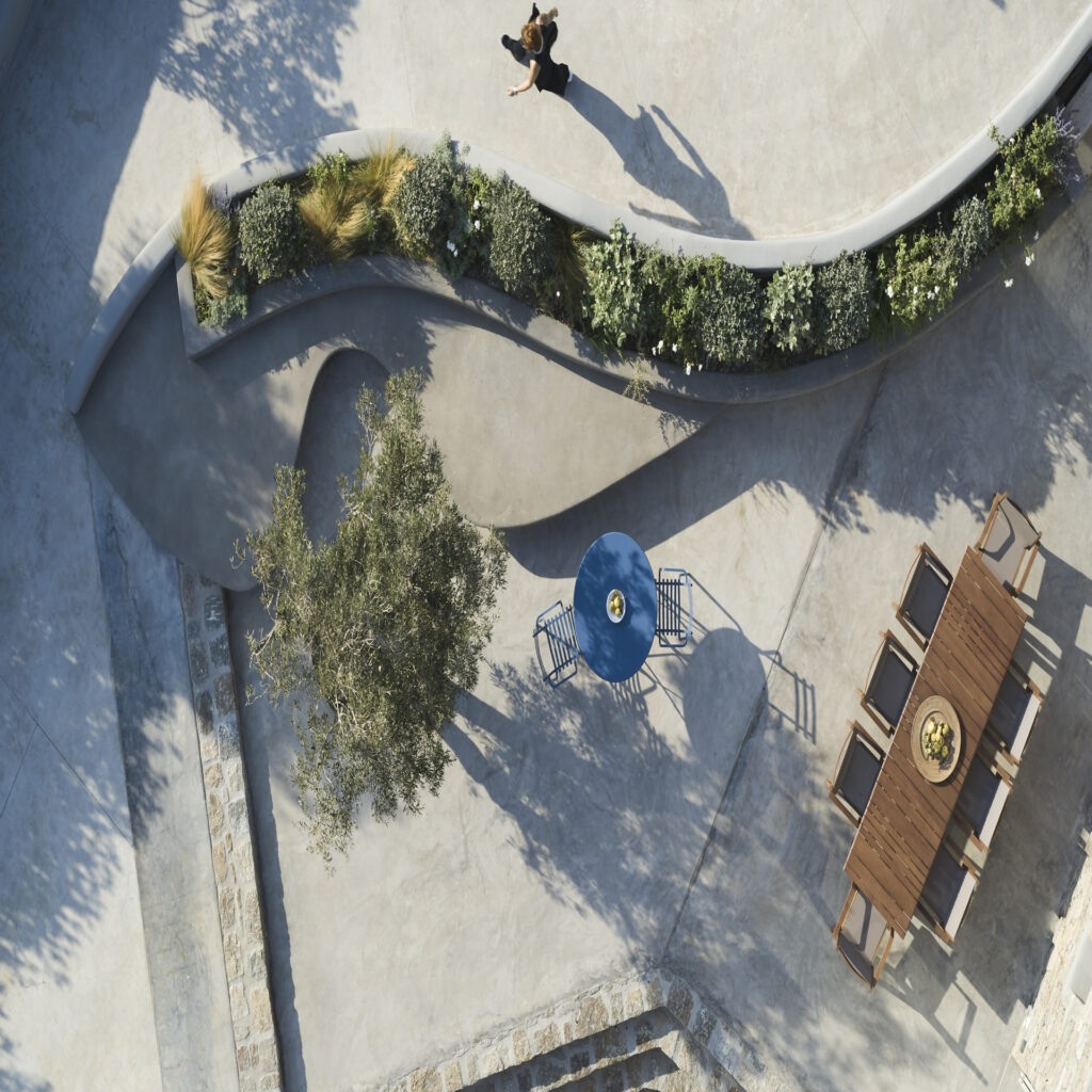 olive trees. - Grand Shaded living space with dining area, sits 40 guests close to the BBQ