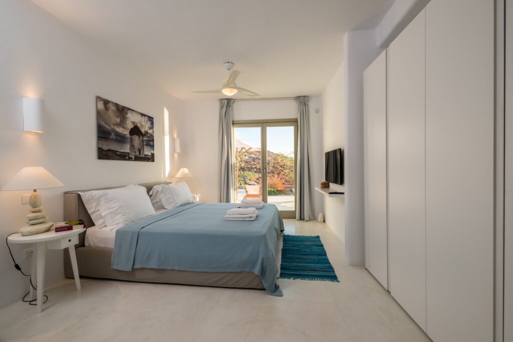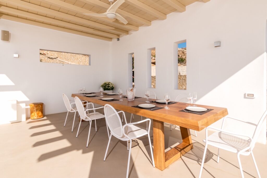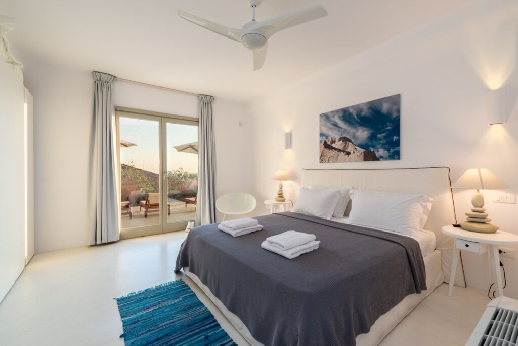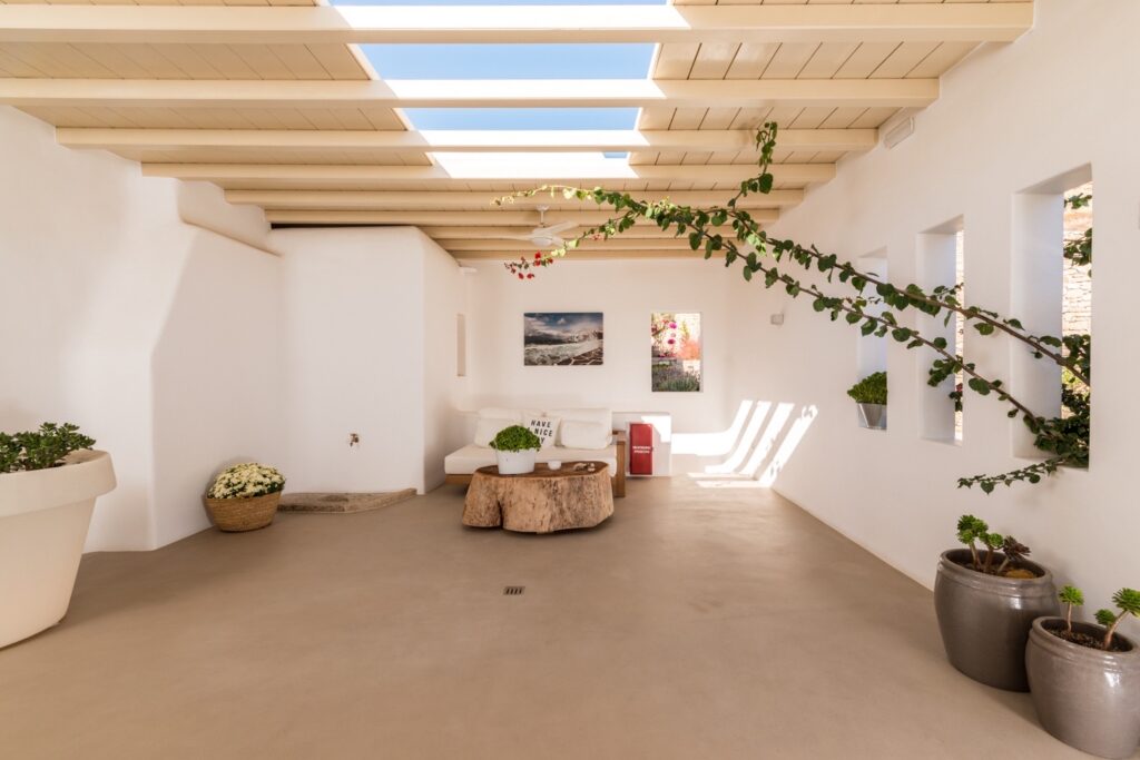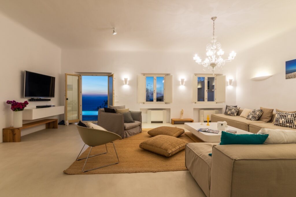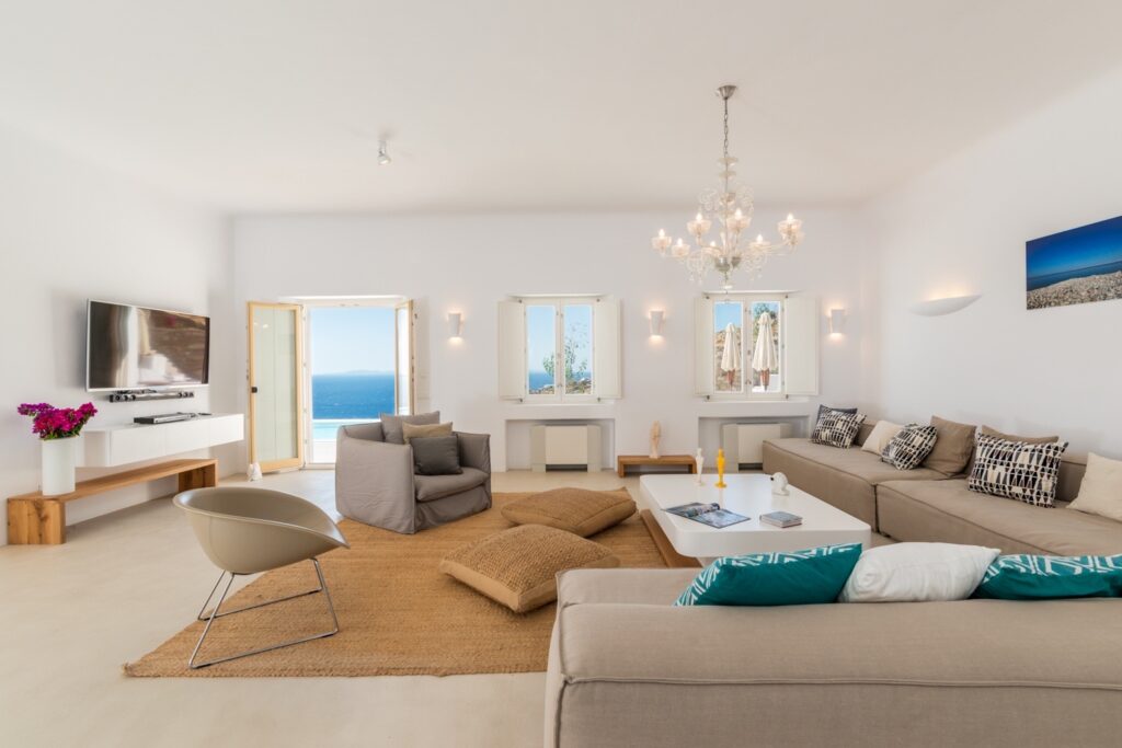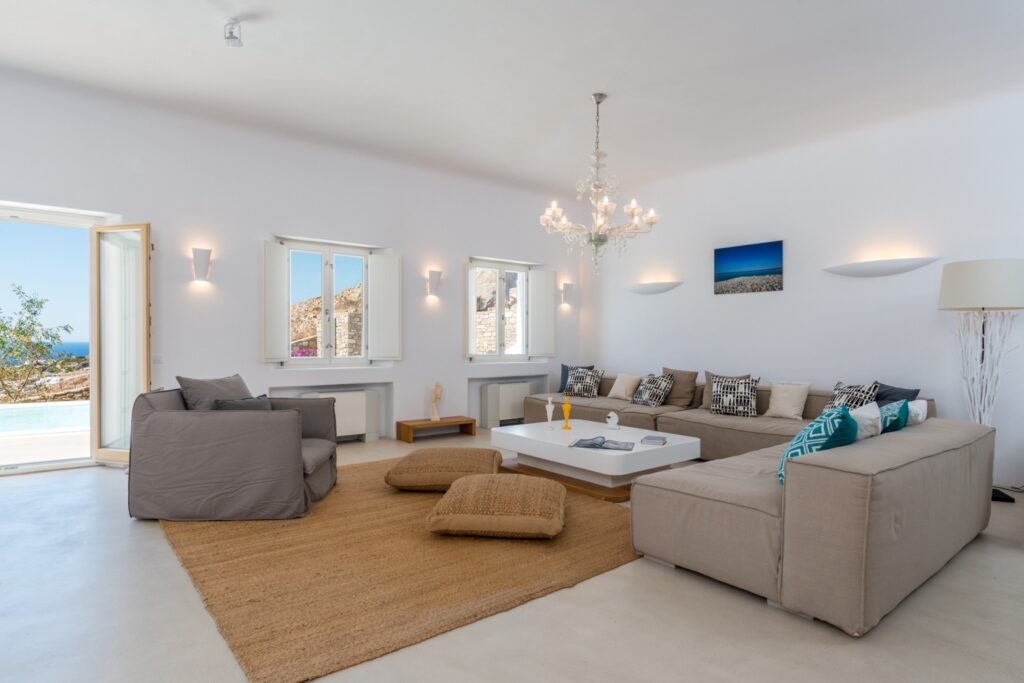 This secluded rental offers guests the sense of privacy and relaxation and is well protected from the north Mykonian winds all summer long, while at the same time is located only a small car ride away from the notorious nightlife of Mykonos. The luxury villa’s design ensures a spectacular view of the sea from all the outdoors sitting and dining areas. The large outdoor spaces are equipped with sun beds, Jacuzzi, barbecue, a dining area and many other private facilities.
