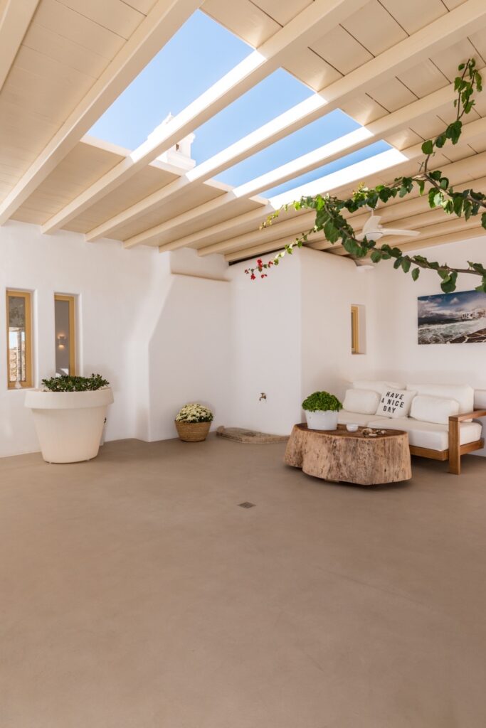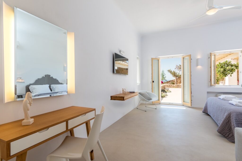 Heliport, infinity pool, a special pool for children, outdoor Jacuzzi, gym, steam room, barbeque, outdoor airplay sound system, security alarm, Wi-Fi internet, private parking for more than 4 cars, are only some of the features of the Emperor Wellness Luxury Villa Retreat in Mykonos. This royal Mykonos villa is not to be missed.