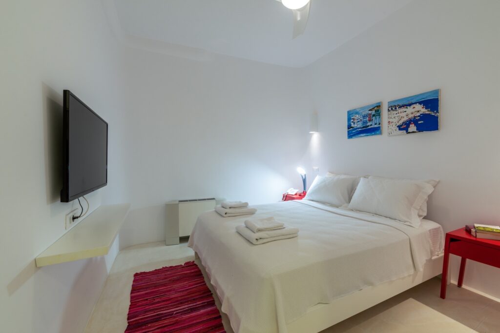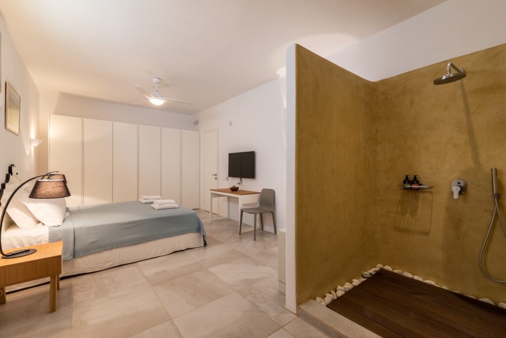 - The Twin bedroom with two single beds, which can be transformed into a double bed, amazing sea view and access to the pool and a bathroom.