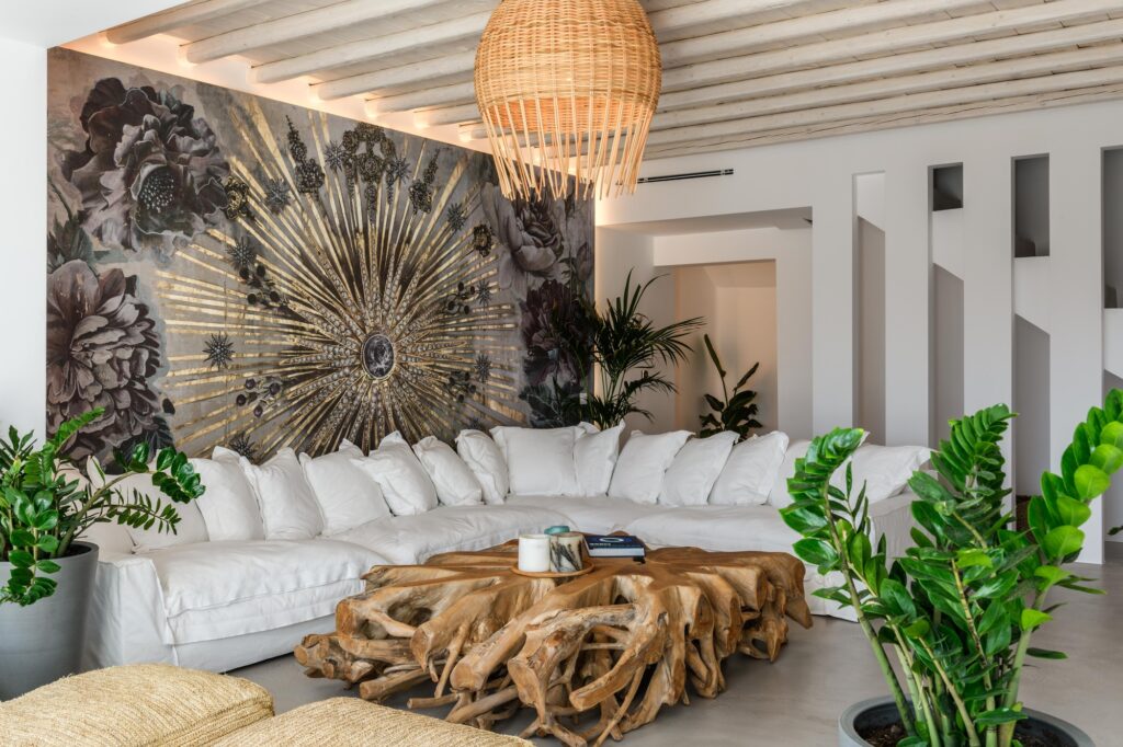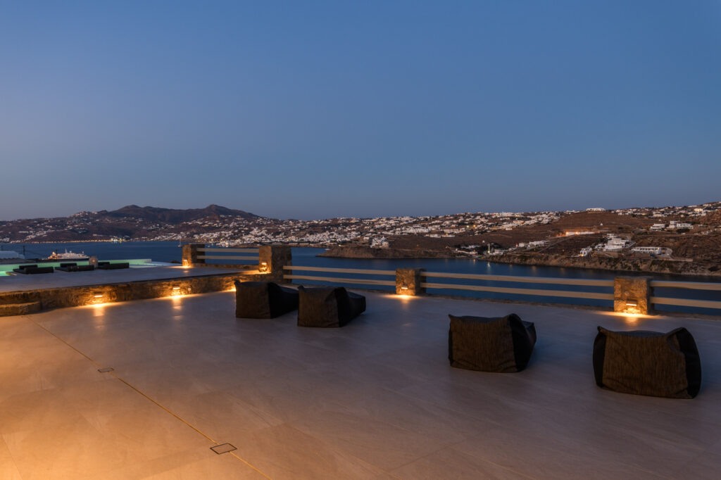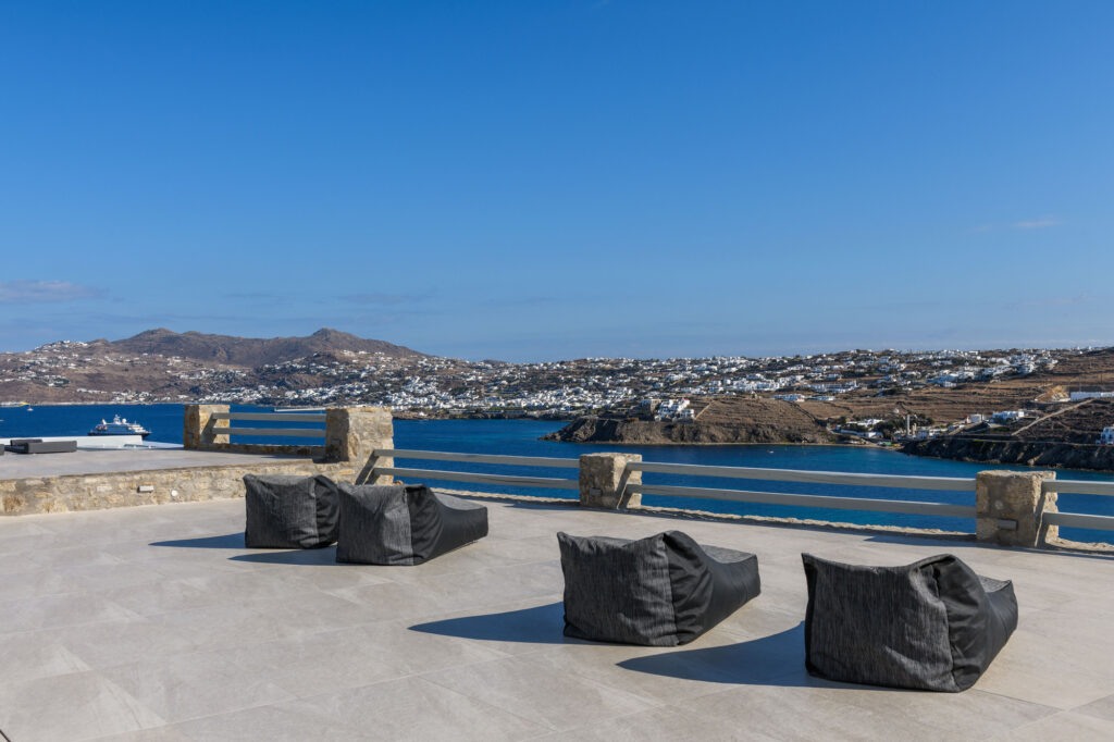 This royal villa in Mykonos has also enjoys majestic views of the Aegean sea and Mykonos town.