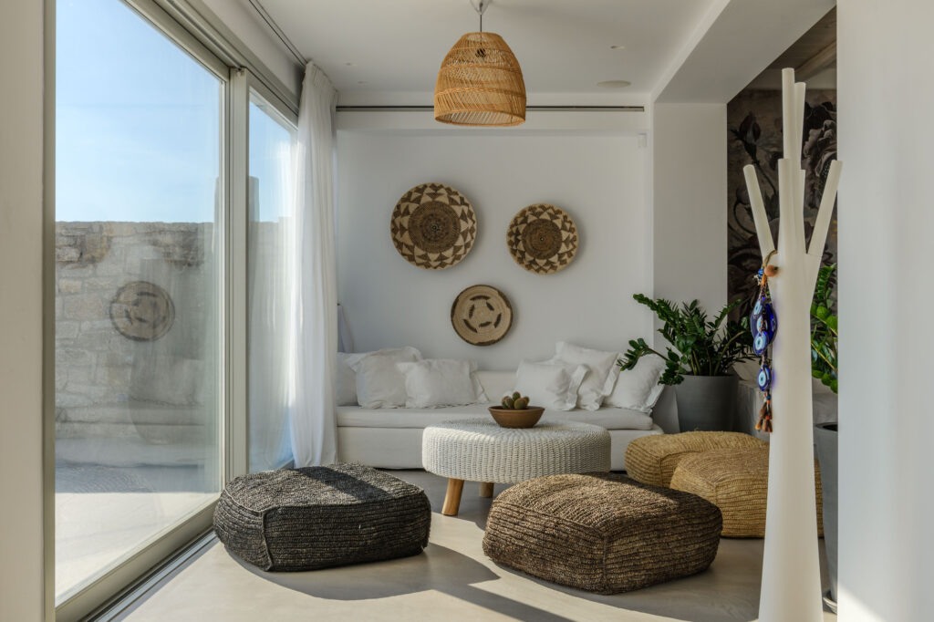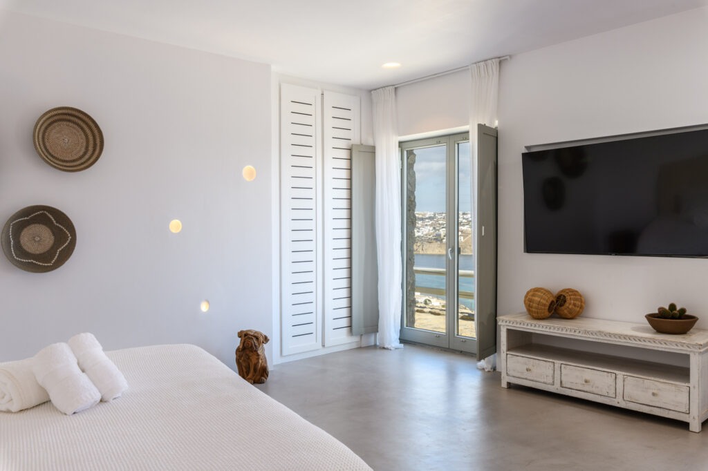 A glamorous property is located only a few minutes away from Ornos and Mykonos Town.