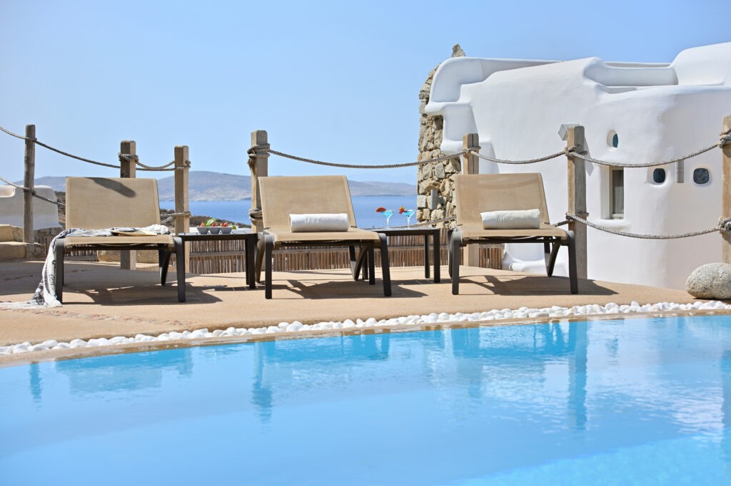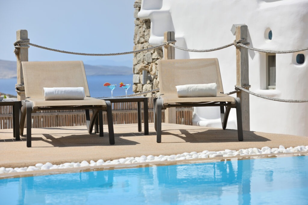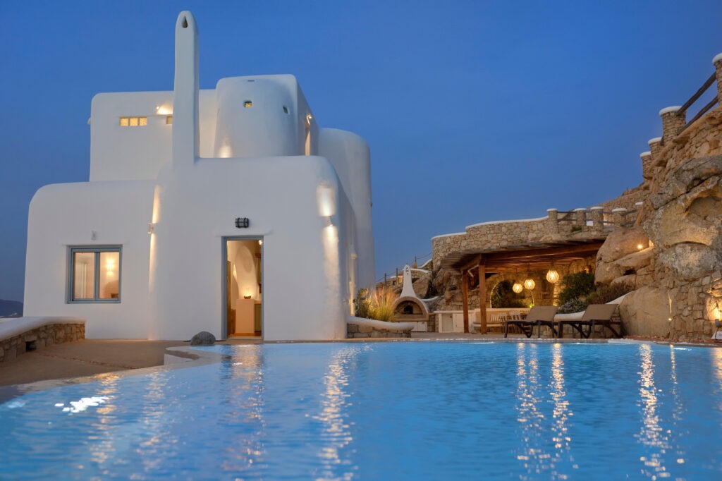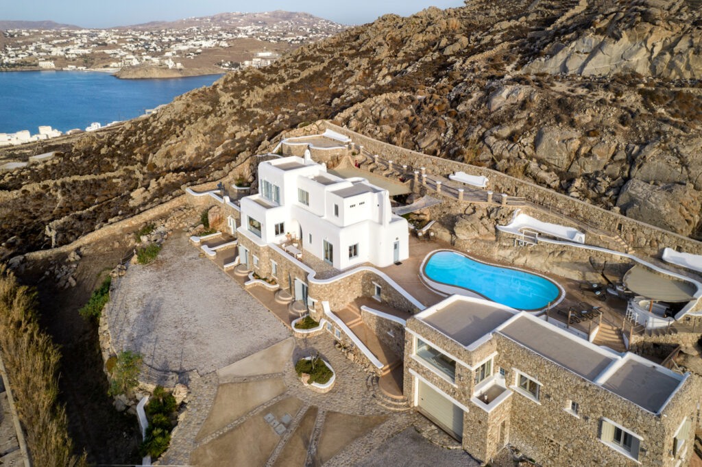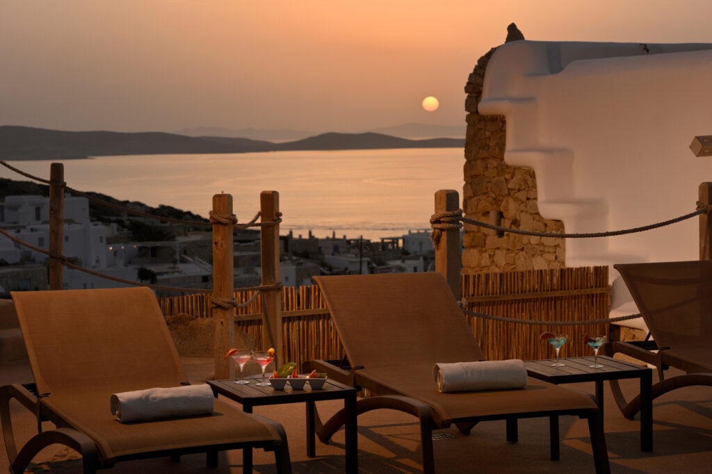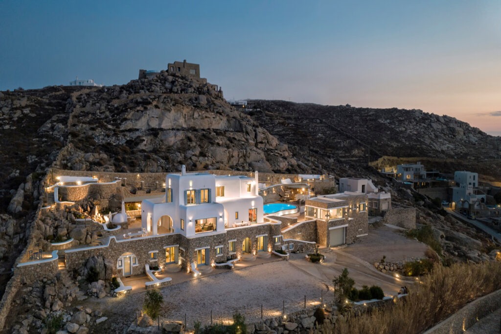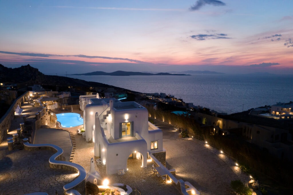 It is just a 15-minute drive from Mykonos Town and offers its guests the ultimate Mediterranean experience, with a superb panoramic view of the Aegean Sea, Mykonos Town, the Old and New port, 5 Cycladic Islands, plus breathtaking sunsets.