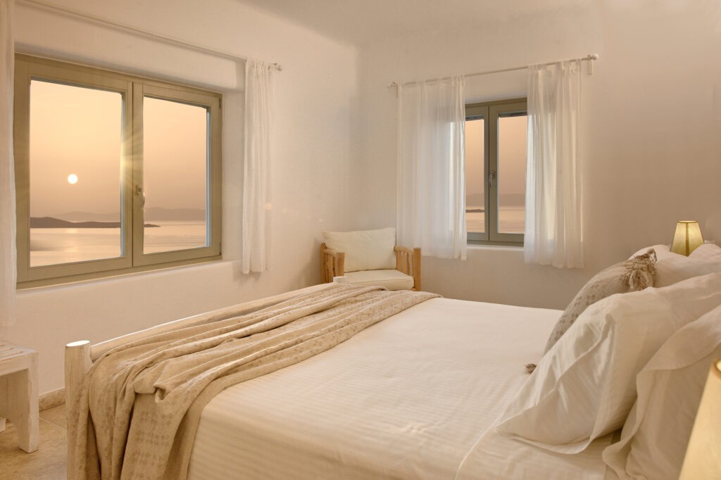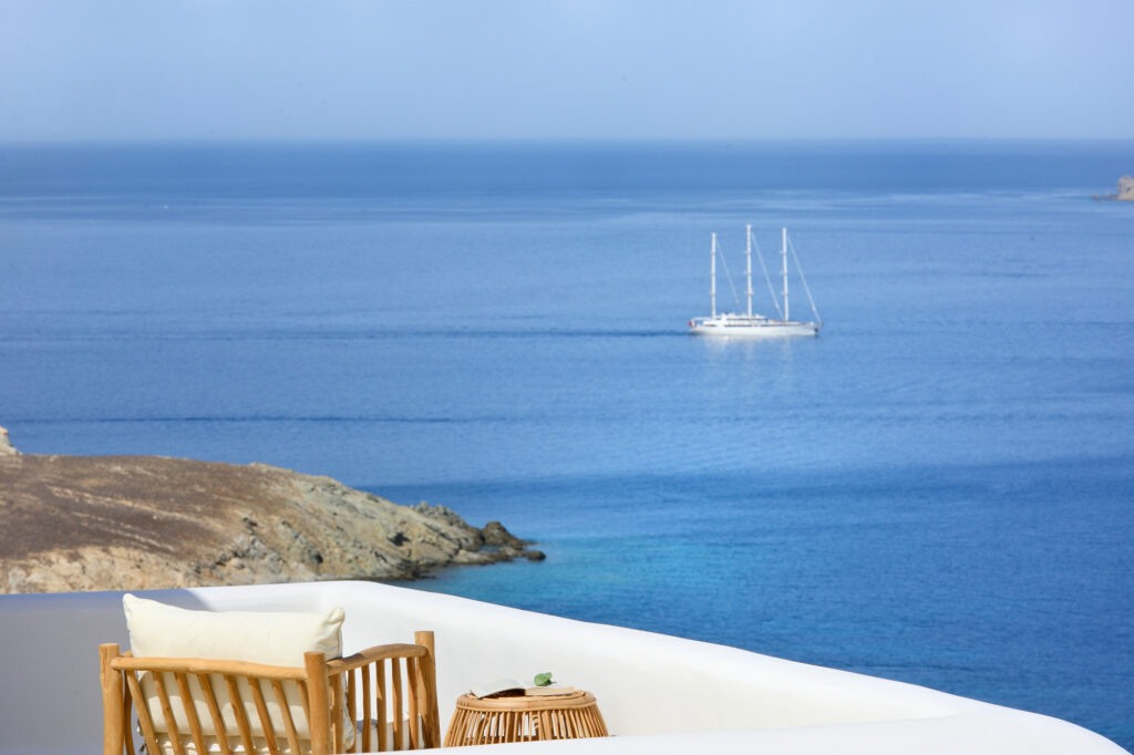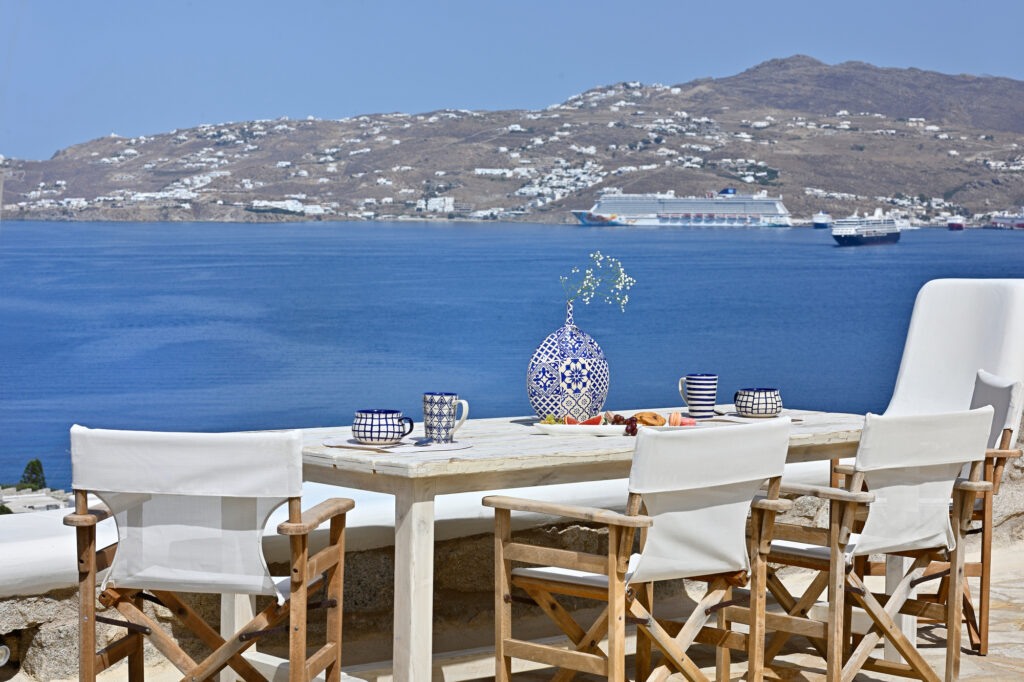 The rooms have panoramic view of the Aegean sea, Mykonos Town, the islands of Tinos, Delos-Rhinia, Syros, Kea, Yaros and the superb sunsets.